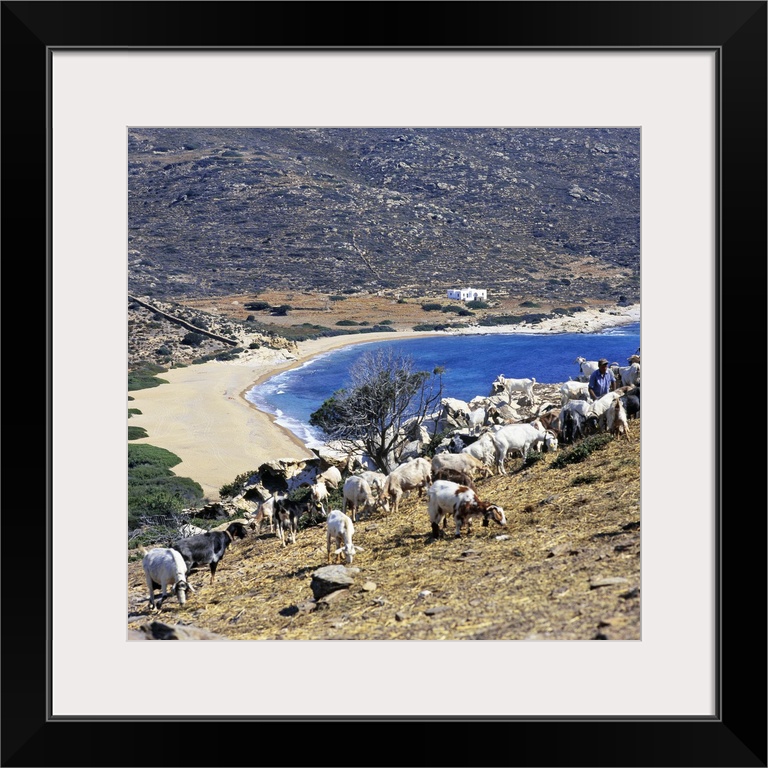 <p>Greece, Aegean islands, Cyclades, Ios island, flock of goats on Cape Kalamos</p>