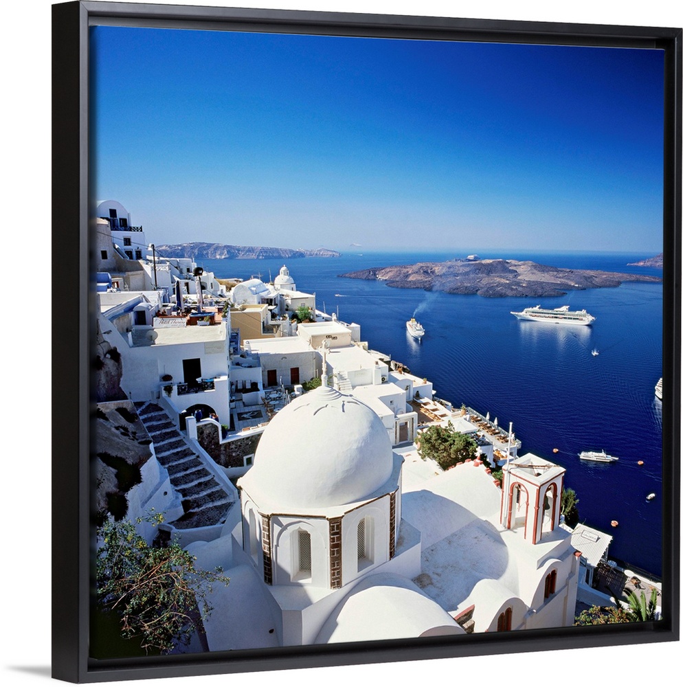 <p>Greece, Aegean islands, Cyclades, Santorini island, Thera, Fira, view towards the crater</p>