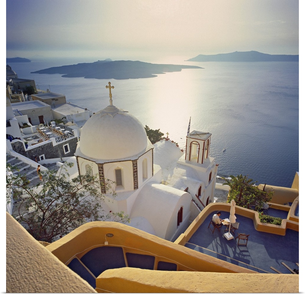 <p>Greece, Aegean islands, Cyclades, Santorini island, Thera, Fira, view towards the crater</p>