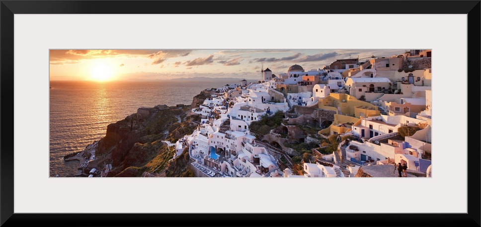 <p>Greece, Aegean islands, Cyclades, Santorini island, Greek Islands, Oia village at sunset.</p>