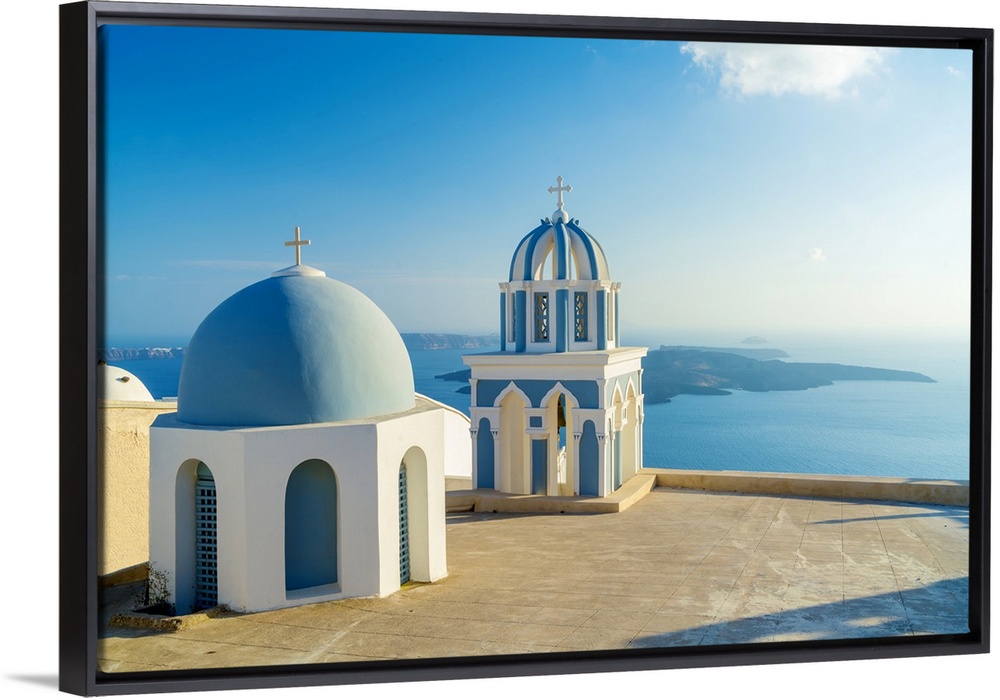 <p>Greece, Aegean islands, Cyclades, Santorini island, Thera, Mediterranean sea, Aegean sea, Greek Islands, Typical church in Fira</p>