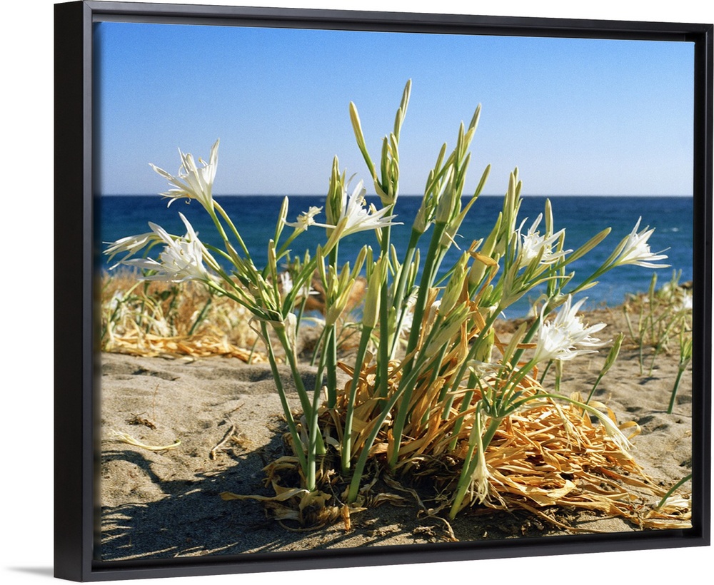 <p>Greece, Aegean islands, Mediterranean sea, Aegean sea, Dodecanese, Carpathos island, Sea daffodil (Pancratium maritimum) at Pigadia bay</p>