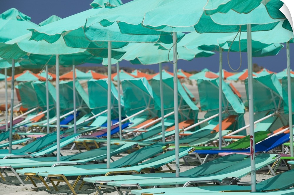 <p>GREECE-CRETE-Hania Province-Elafonisi:.Elafonisi Beach / One of the nicest on Crete.Beach Umbrellas</p>