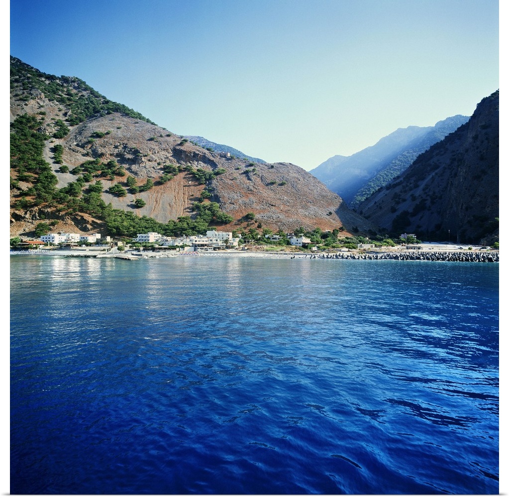 <p>Greece, Crete Island, Crete, Chania, Agia Roumeli, Mediterranean area, Mediterranean sea, Travel Destination, The village and the castle on the exit of Samaria gorge, view from the ferry boat</p>
