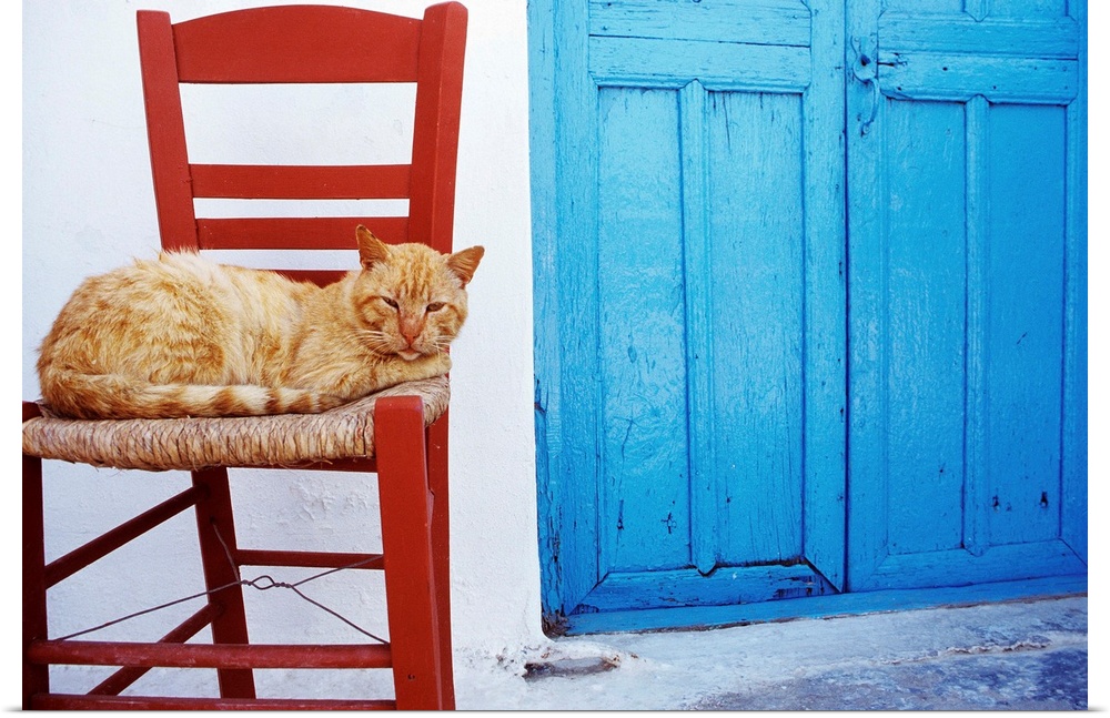 <p>Greece, Cyclades, Amorgos island, A cat in the port of Katapola.</p>
