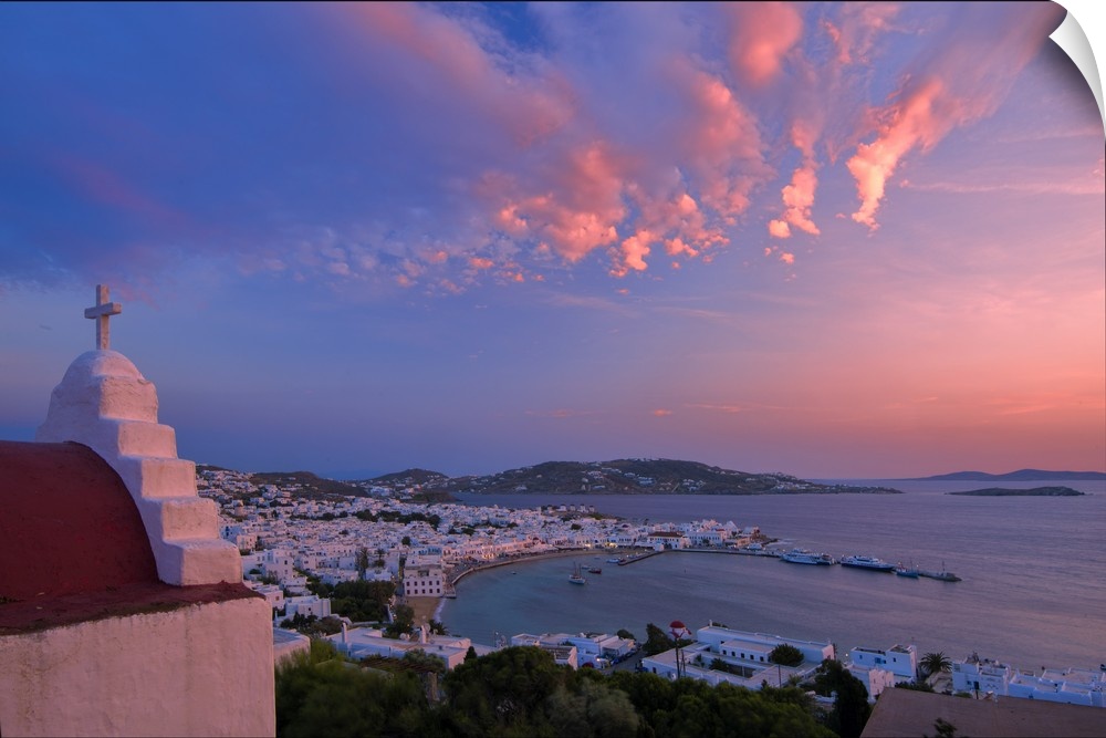 <p>Europe, Greece, Cyclades island, Aegean Sea, Mykonos, Myconos, Mykonos harbour at dusk.</p>