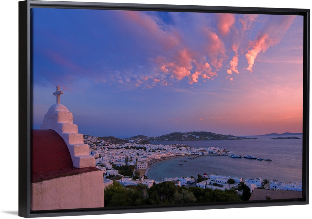 <p>Europe, Greece, Cyclades island, Aegean Sea, Mykonos, Myconos, Mykonos harbour at dusk.</p>