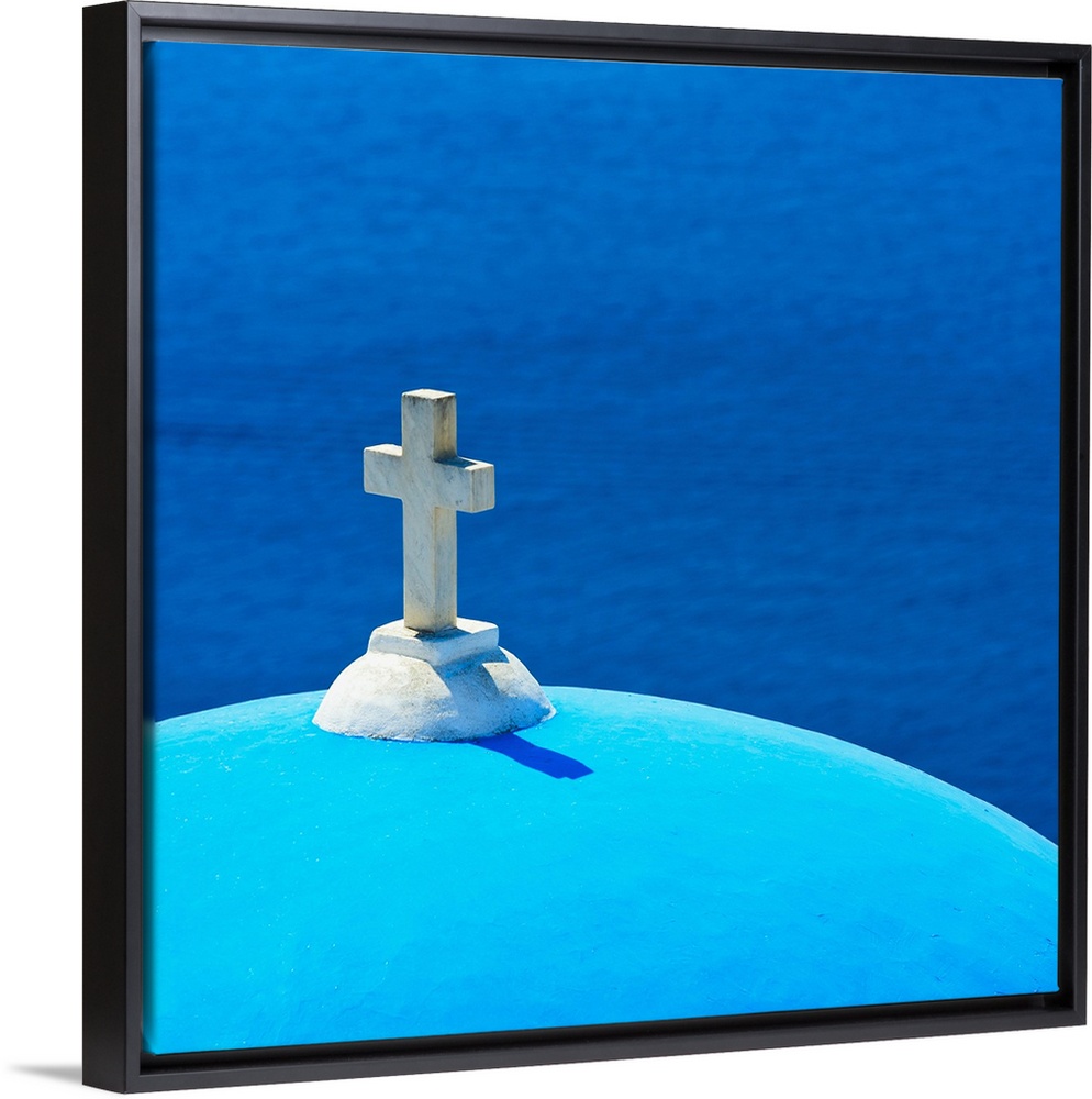 <p>Greece, Cyclades Islands, Santorini, Oia, Church dome with cross by sea</p>