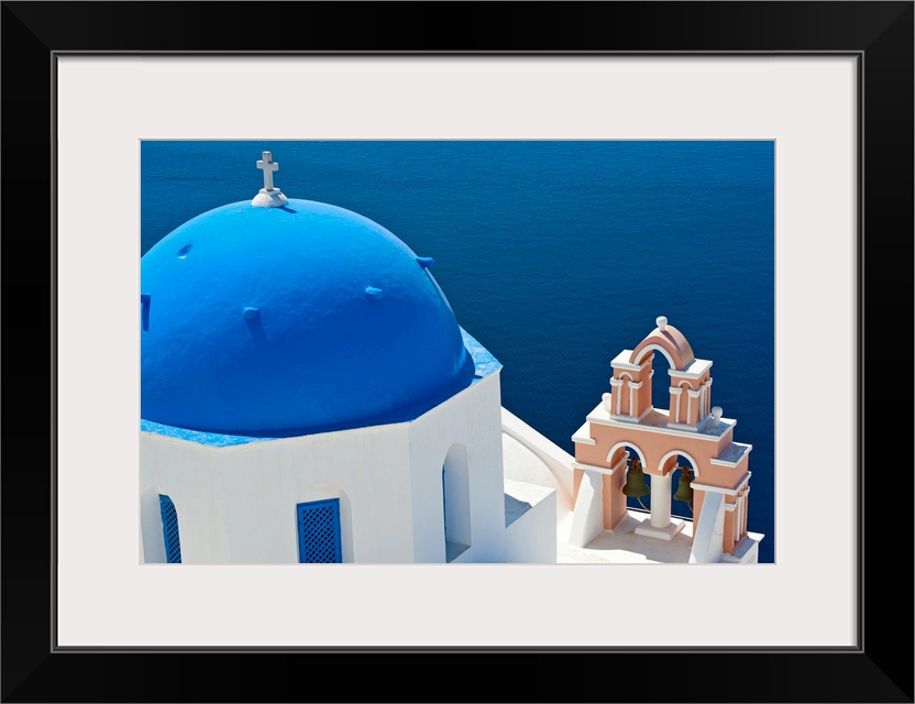 <p>Greece, Cyclades Islands, Santorini, Oia, Church with bell tower by sea</p>