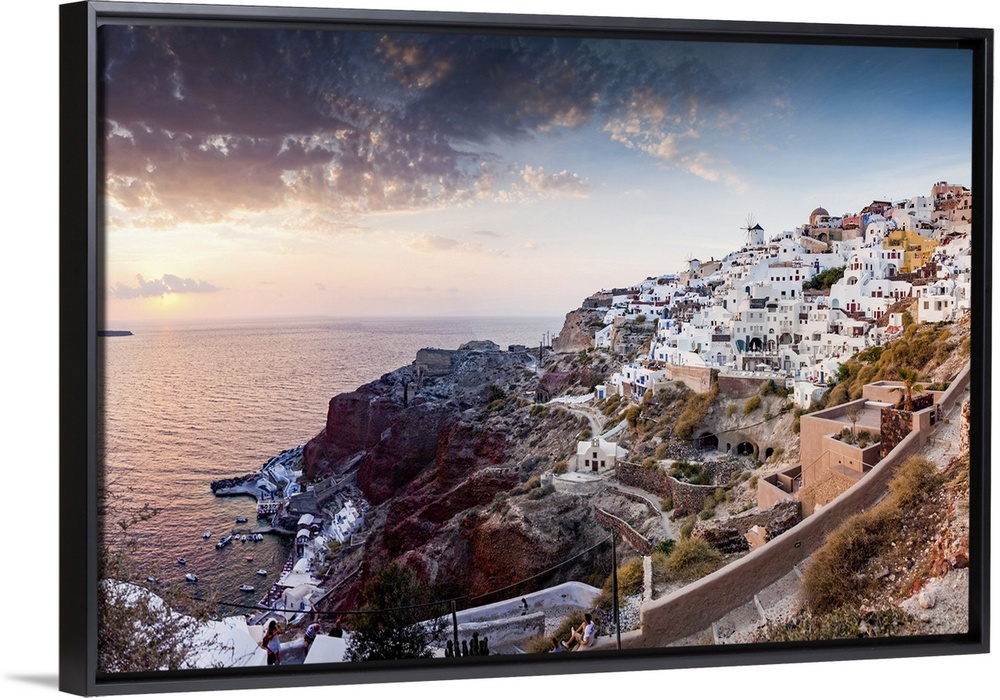 <p>Greece, Aegean islands, Cyclades, Santorini island, Thera, Mediterranean sea, Aegean sea, Greek Islands, Oia and its famous windmill at sunset</p>