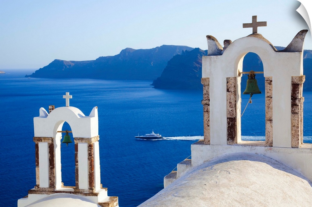 <p>Greece, Aegean islands, Mediterranean sea, Aegean sea, Greek Islands, Cyclades, Santorini island, View towards Caldera, Oia Village.</p>