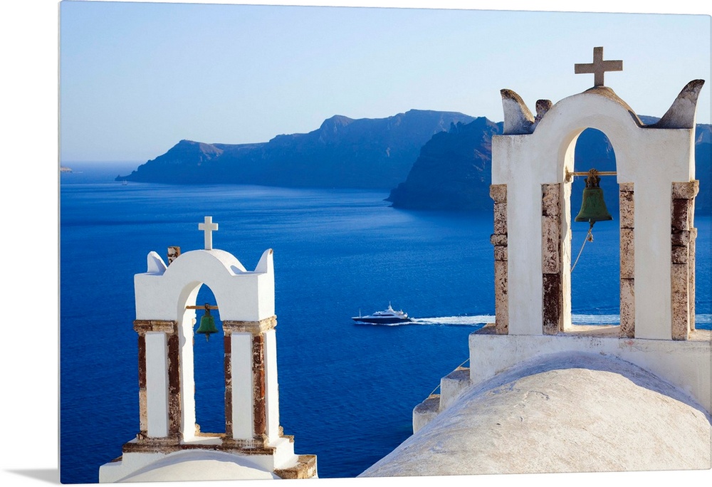 <p>Greece, Aegean islands, Mediterranean sea, Aegean sea, Greek Islands, Cyclades, Santorini island, View towards Caldera, Oia Village.</p>