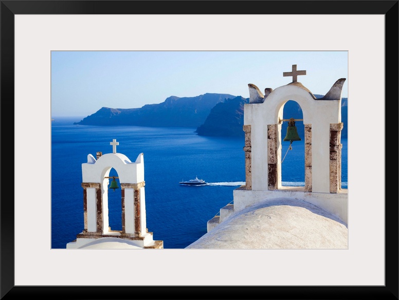 <p>Greece, Aegean islands, Mediterranean sea, Aegean sea, Greek Islands, Cyclades, Santorini island, View towards Caldera, Oia Village.</p>