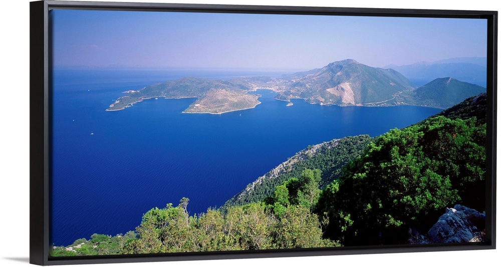 <p>Greece, Ell..s, Ionian Islands, Ithaca island, Ith..ki, View towards Vathi town</p>