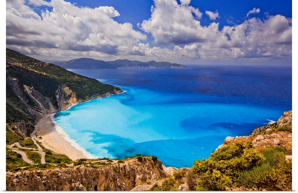<p>Greece, Ionian Islands, Mediterranean sea, Ionian sea, Greek Islands, Cephalonia Island, Kefalonia, Myrtos Beach.</p>