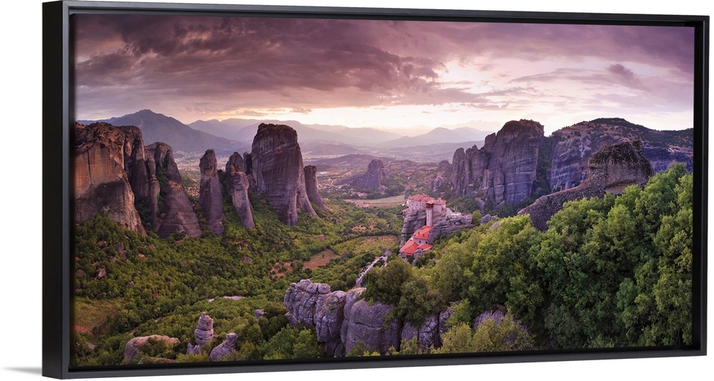 <p>Greece, Thessaly, Meteora, Panoramic view of Meteora and Holy Monastery of Rousanou</p>