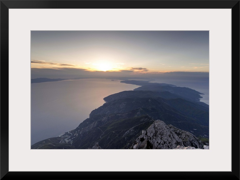 <p>Greece, Mount Athos, Mount Athos Monastic Republic, Mount Athos Peninsula, view from the summit at sunset.</p>