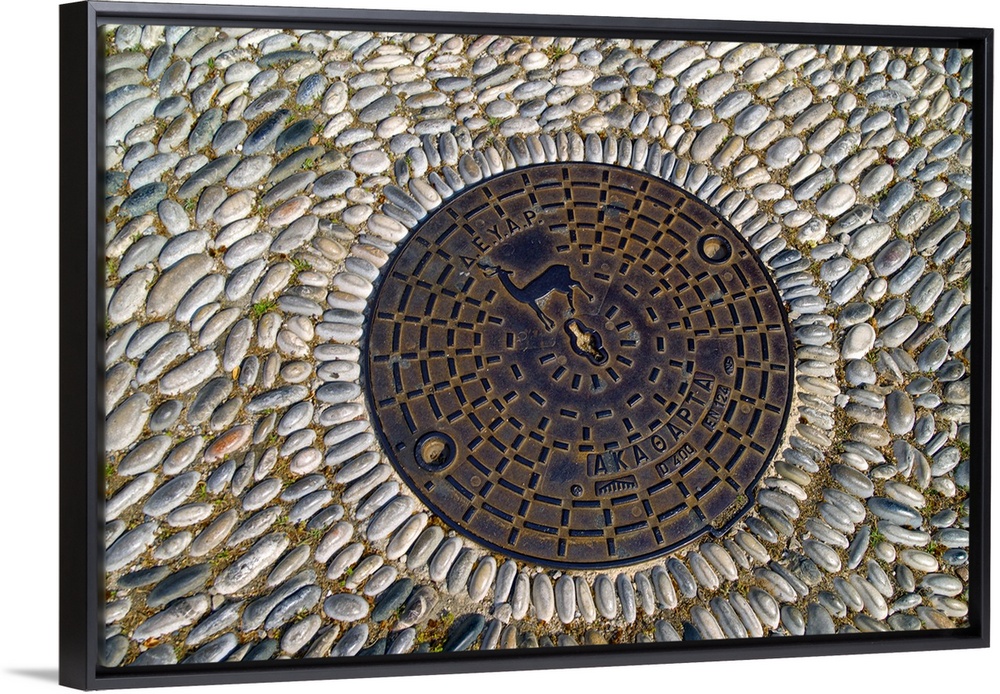 <p>Greece, Rhodes, Manhole cover with symbol of Rhodes</p>