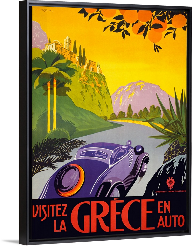 Art Vintage Apple Collection Graphic Art Greece Transportation Car Classic and Vintage Cars Travel Posters Vintage Travel Posters Vintage Art Vintage Advertising Posters Travel Advertising