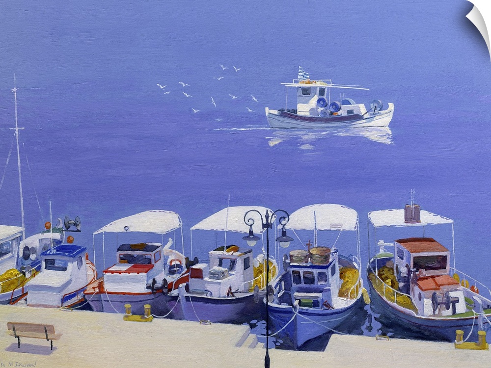 Art Blue Wall Art Contemporary Art William Ireland Painting Greece Fishing Transportation Boat