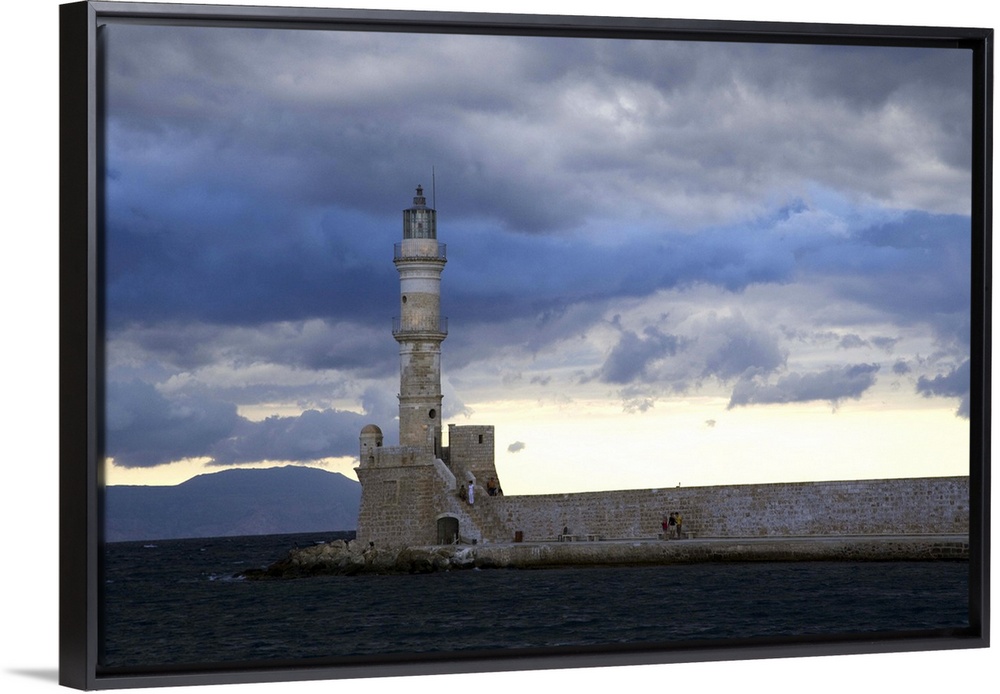 <p>Greek Island of Crete and old town of Chania with Venetian Lighthouse along the old harbor</p>