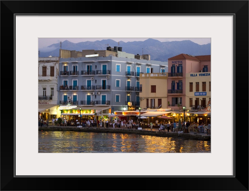 <p>Greek Island of Crete and old town of Chania evening light along the old harbor and the colorful buildings</p>