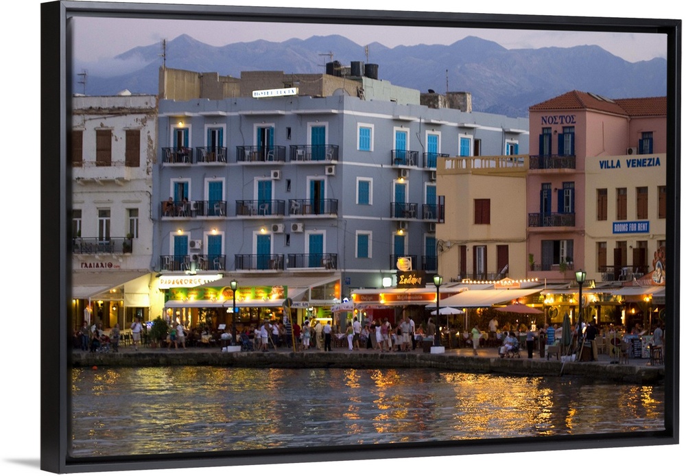 <p>Greek Island of Crete and old town of Chania evening light along the old harbor and the colorful buildings</p>