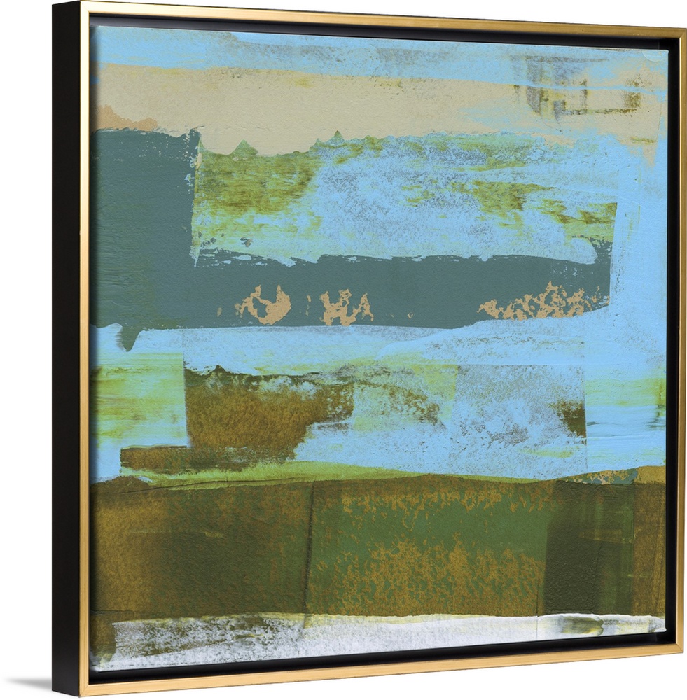 <p>Sharon Gordon creates abstract paintings inspired by the landscape surrounding her. She states, "I am and have always been completely captivated by places near or surrounded by water, especially the ocean. Experiencing a vista, particularly involving bodies of water, enhances the idea that an atmosphere can be an ever-changing, never-ending range of rhythm and volatility while remaining consistently whole." With her art, Gordon intends to evoke and "internal landscape," giving viewers the chance to transport themselves into a larger vista and recalling moments of time and space that they may have visited before.</p>