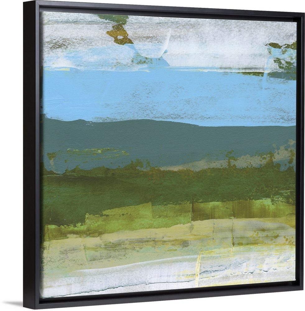 <p>Sharon Gordon creates abstract paintings inspired by the landscape surrounding her. She states, "I am and have always been completely captivated by places near or surrounded by water, especially the ocean. Experiencing a vista, particularly involving bodies of water, enhances the idea that an atmosphere can be an ever-changing, never-ending range of rhythm and volatility while remaining consistently whole." With her art, Gordon intends to evoke and "internal landscape," giving viewers the chance to transport themselves into a larger vista and recalling moments of time and space that they may have visited before.</p>