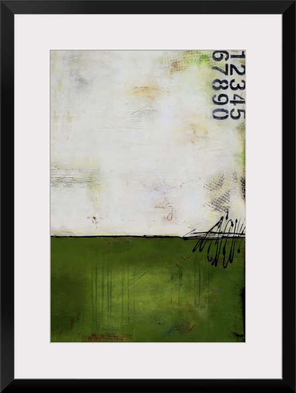 <p>Contemporary abstract painting using dark green and stenciled numbers.</p>
