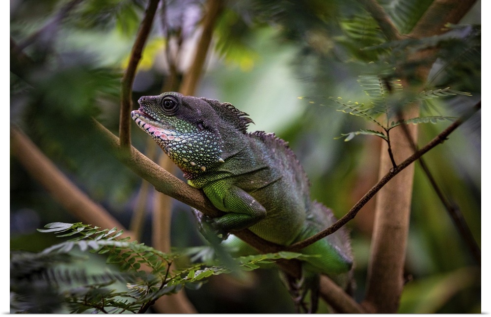 <p>Green chameleon camouflaged among lush foliage, displaying natural wildlife and adaptation at Kew Gardens, London, England, United Kingdom, Europe</p>