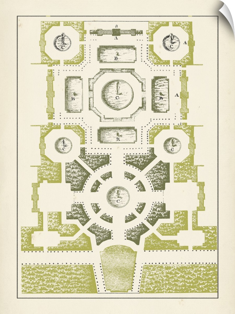 Art J.F. Blondel Drawing Green Wall Art Garden Vintage Art