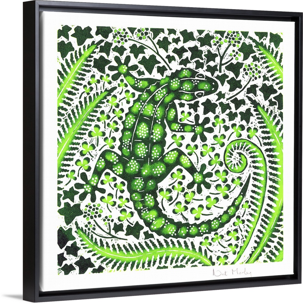<p>Green Gecko, 2002 (woodcut) by Morley, Nat (Contemporary Artist)</p>