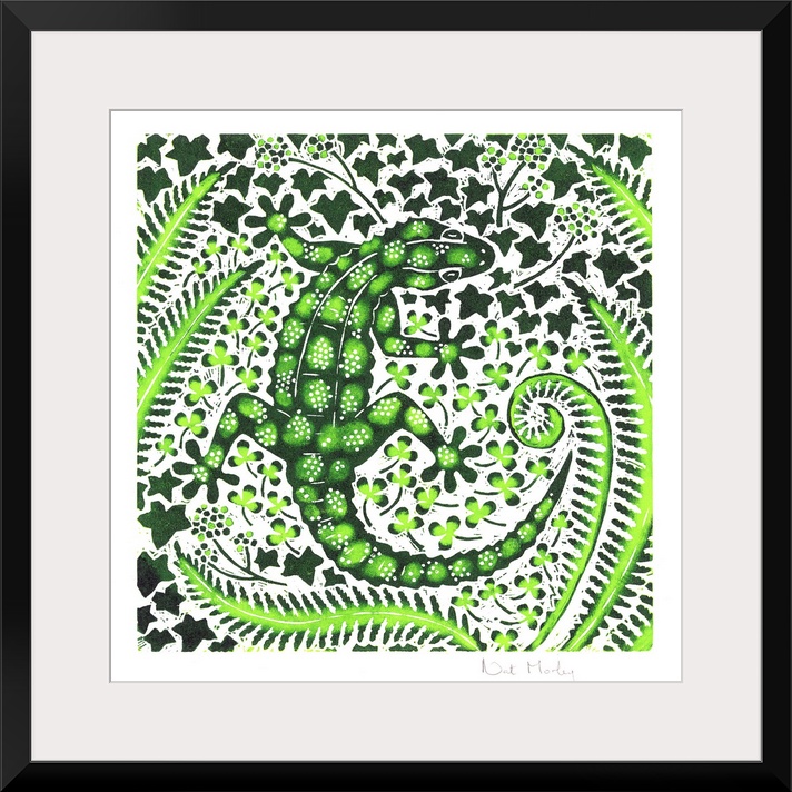 <p>Green Gecko, 2002 (woodcut) by Morley, Nat (Contemporary Artist)</p>