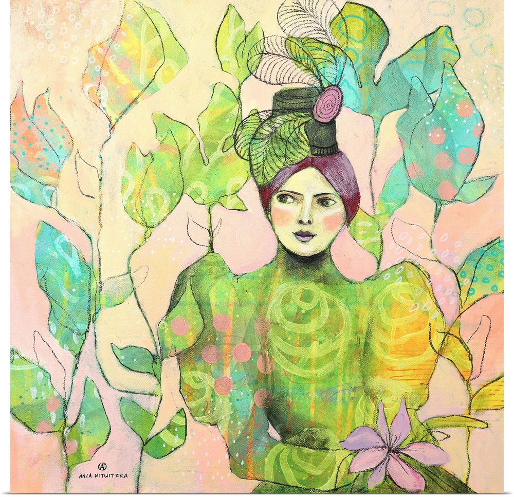 Art Contemporary and Modern Contemporary Art Florals Green Wall Art Painting People Portraits Ania Witwitzka