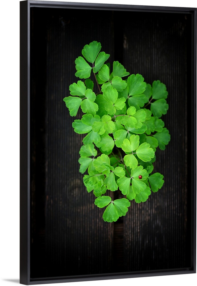 <p>Close up of small green leaves with a ladybug</p>