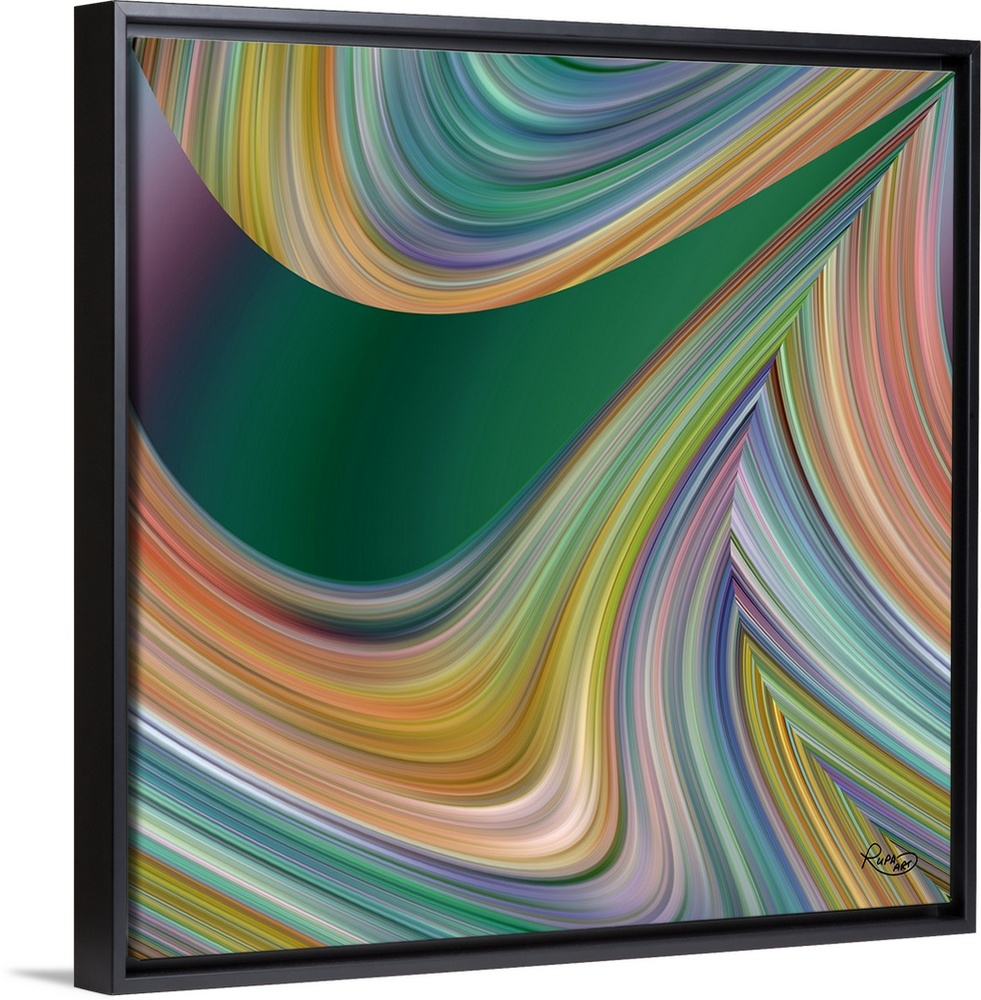 <p>Square abstract of striped swirled shapes in a multi-colored design.</p>