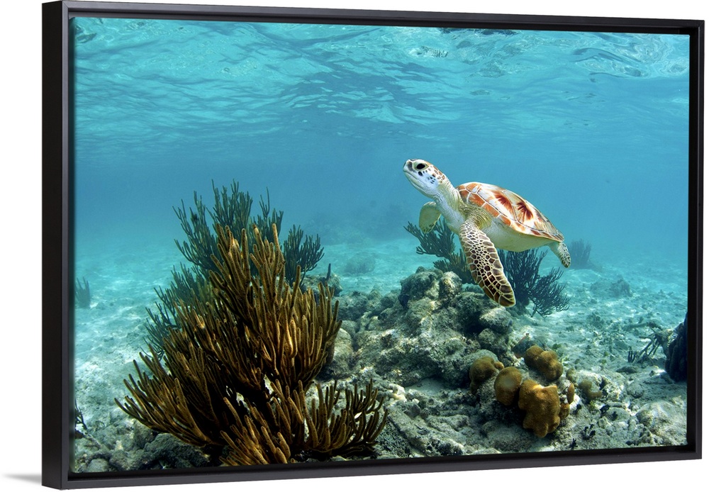 <p>endangered species - green sea turtle and coral reef - tulum. mexico</p>