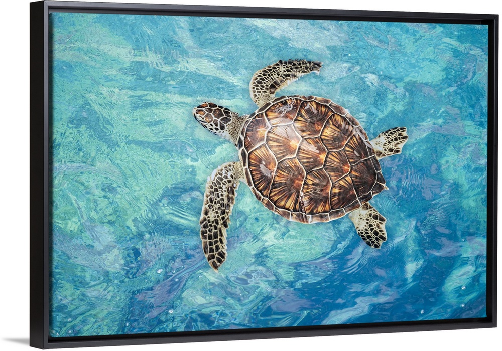 <p>Green sea turtle (chelonia mydas), an endangered species, on the surface for a breath off west Maui, Hawaii, united states of America.</p>