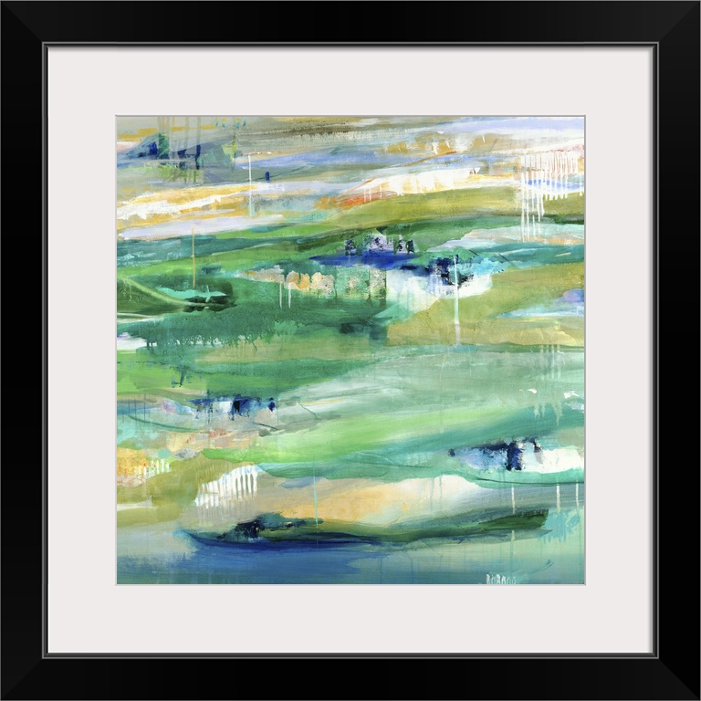 <p>A contemporary abstract painting using predominantly green with hints of yellow.</p>
