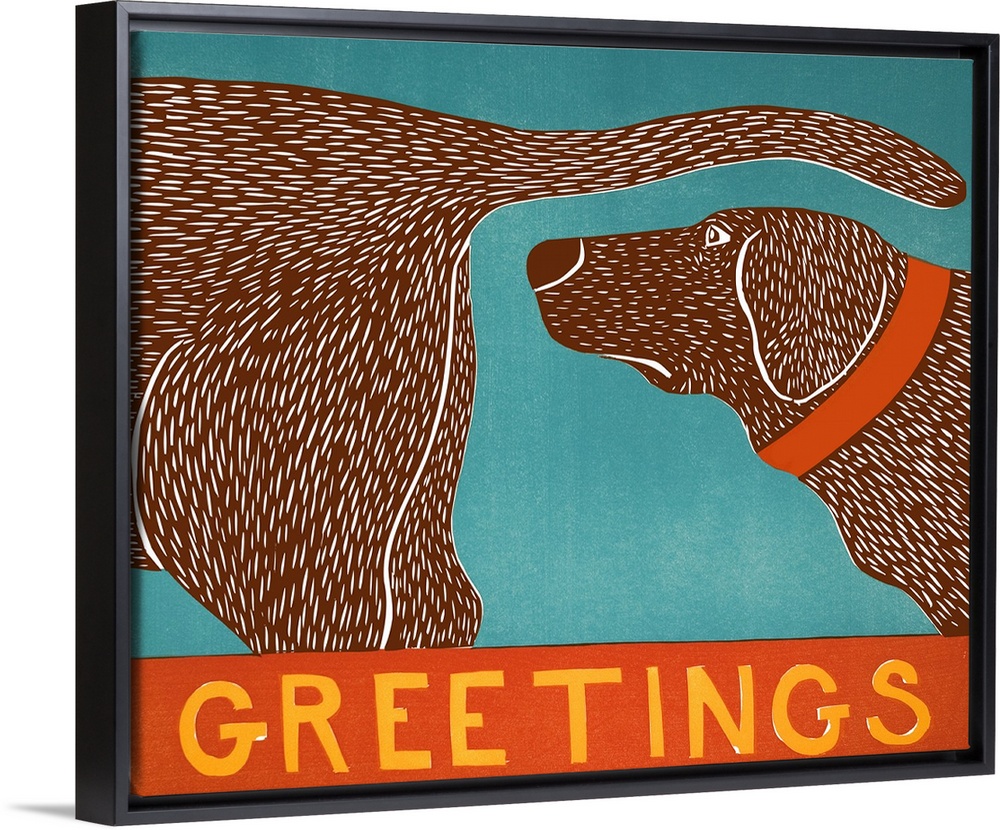 <p>Illustration of a chocolate lab sniffing another chocolate lab's behind with the word "Greetings" written on the bottom.</p>