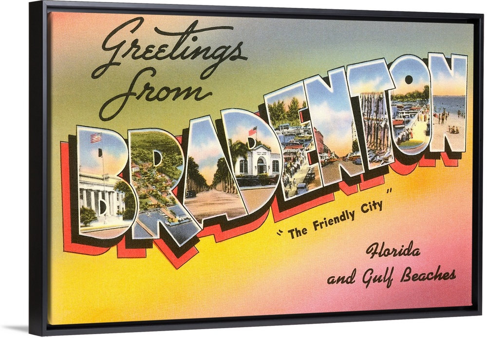 <p>Greetings from Bradenton, The Friendly City, Florida, and Gulf Beaches large letter vintage postcard</p>