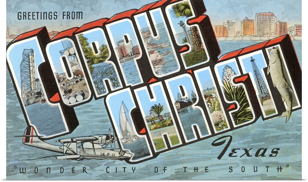 <p>Greetings from Corpus Christi, Texas, Wonder City of the South, large letter vintage postcard</p>