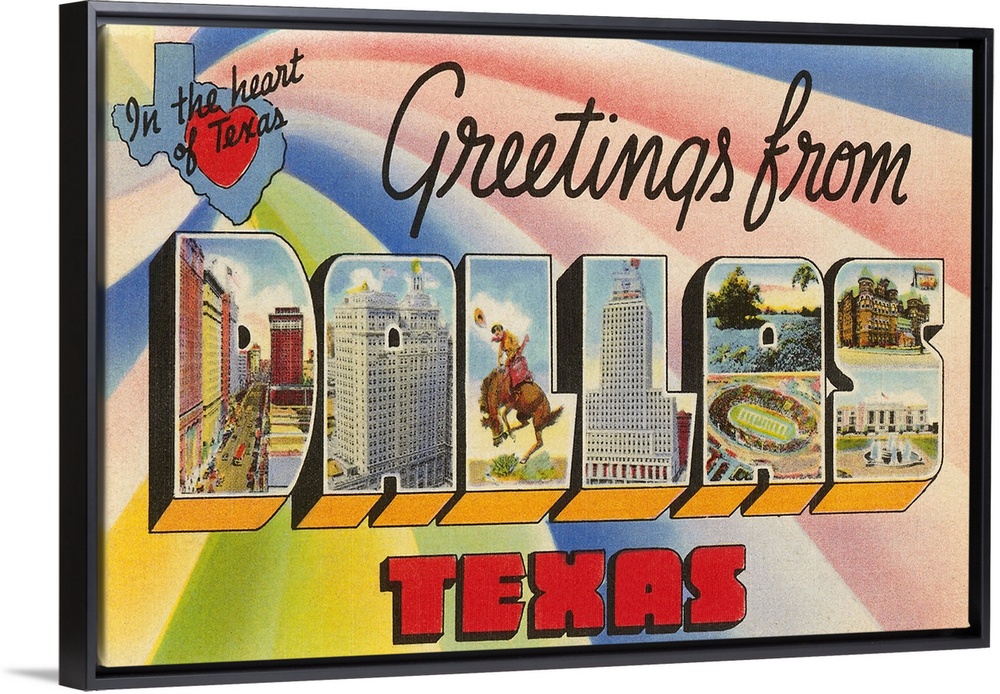 <p>Greetings from Dallas, Texas, in the Heart of Texas, large letter vintage postcard</p>