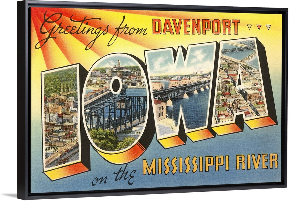 <p>Greetings from Davenport, Iowa on the Mississippi River large letter vintage postcard</p>