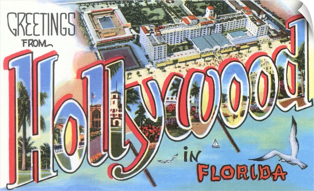 <p>Greetings from Hollywood in Florida large letter vintage postcard</p>