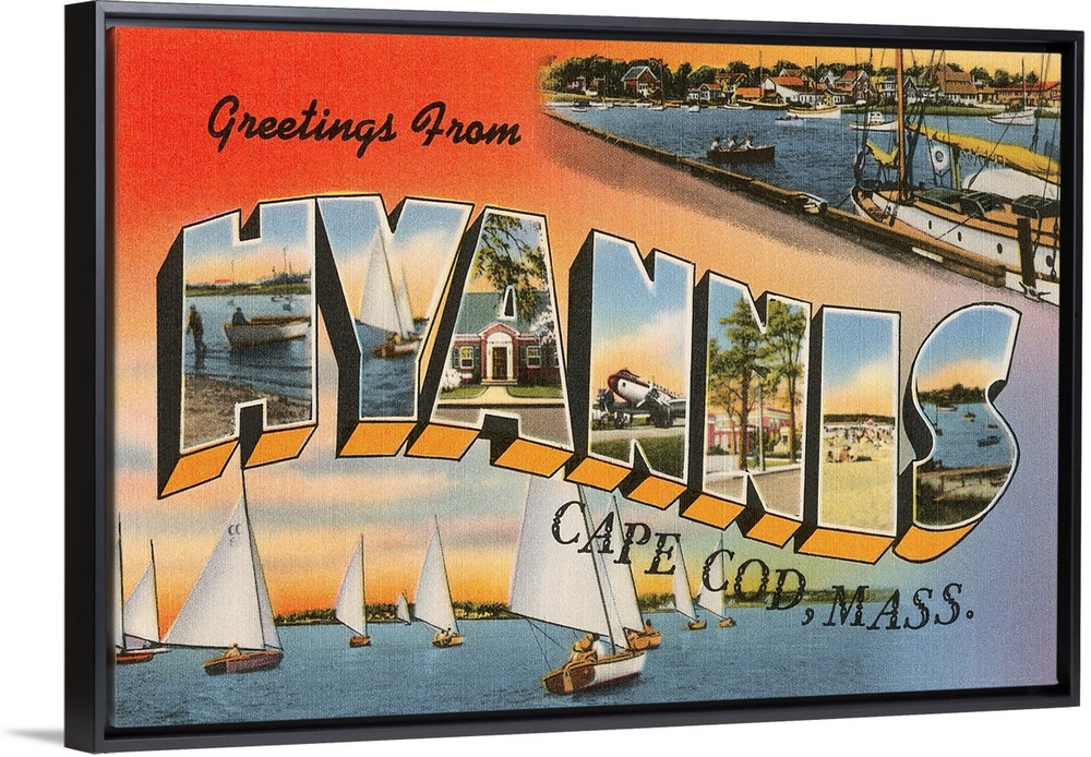 <p>Greetings from Hyannis, Cape Cod, Massachusetts large letter vintage postcard</p>