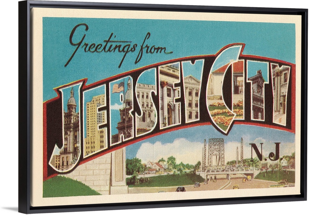<p>Greetings from Jersey City, New Jersey large letter vintage postcard</p>