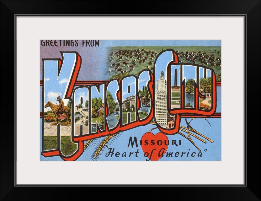 <p>Greetings from Kansas City, Missouri, Heart of America, large letter vintage postcard</p>