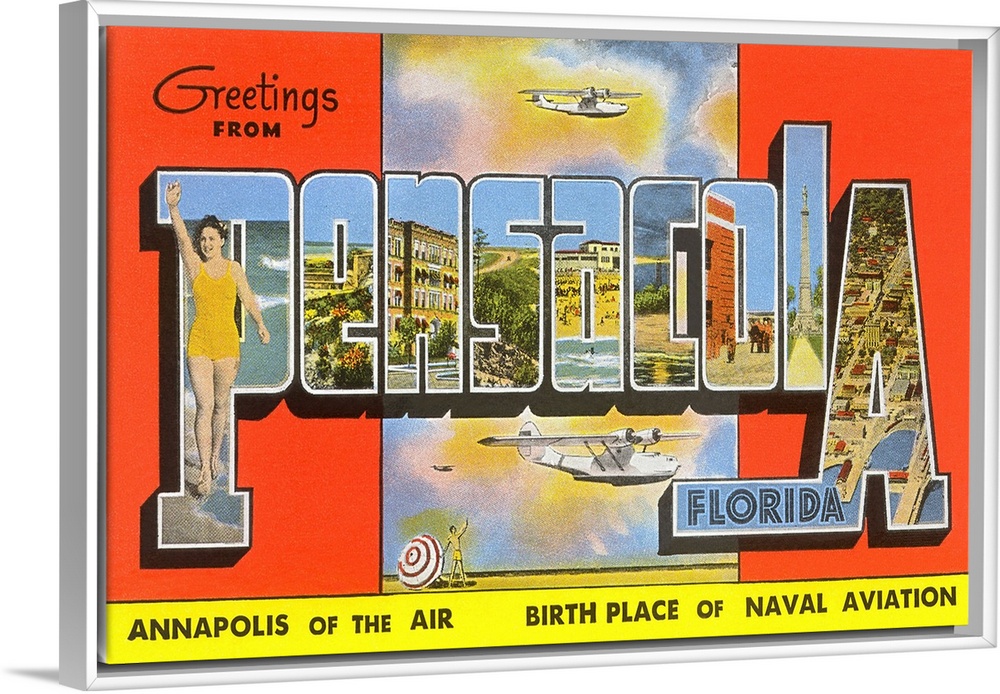 <p>Greetings from Pensacola, Florida, Annapolis of the Air, Birth Place of Naval Aviation large letter vintage postcard</p>